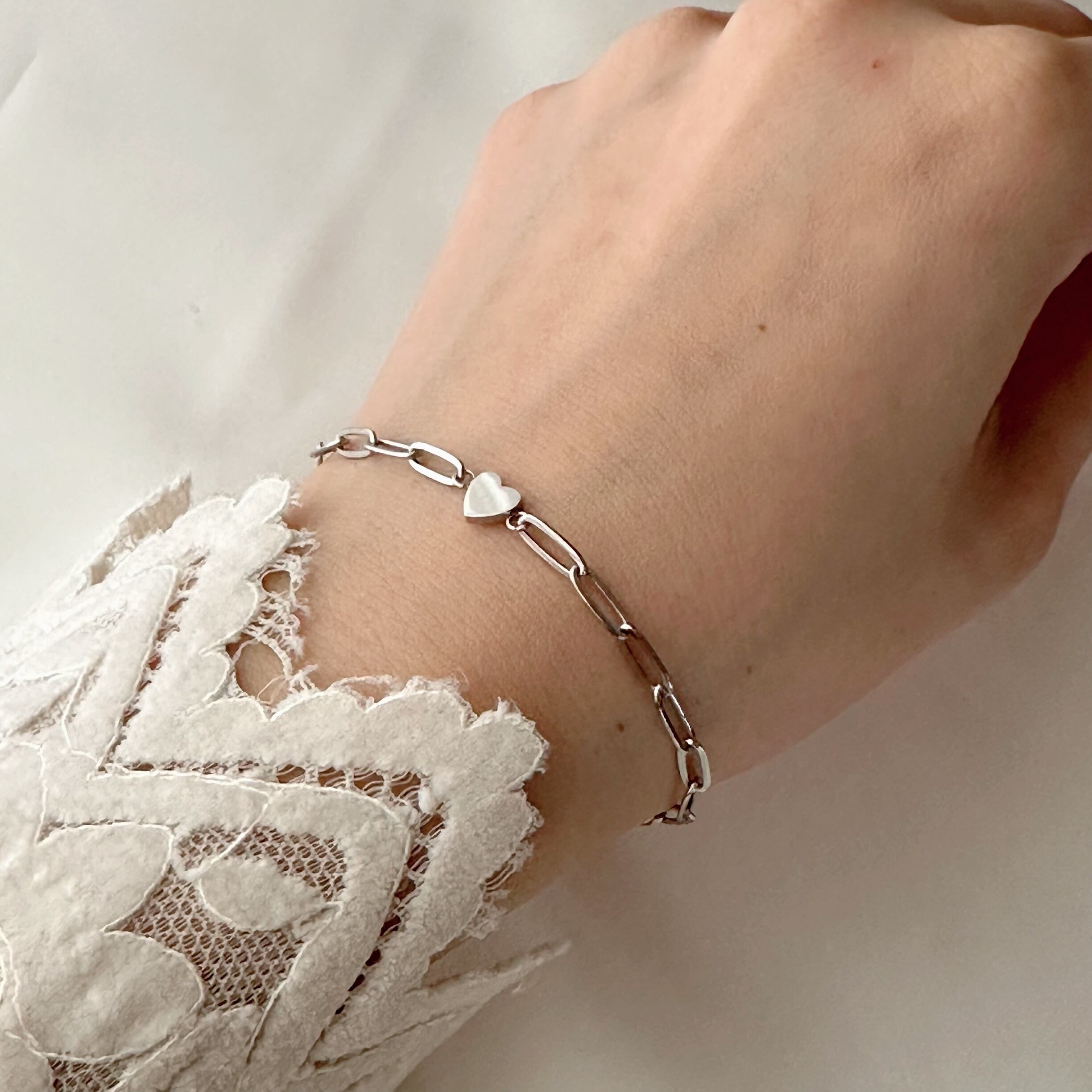 シンプルな中にもさりげないハートで大人可愛いを演出出来るオシャレなブレスレットです!