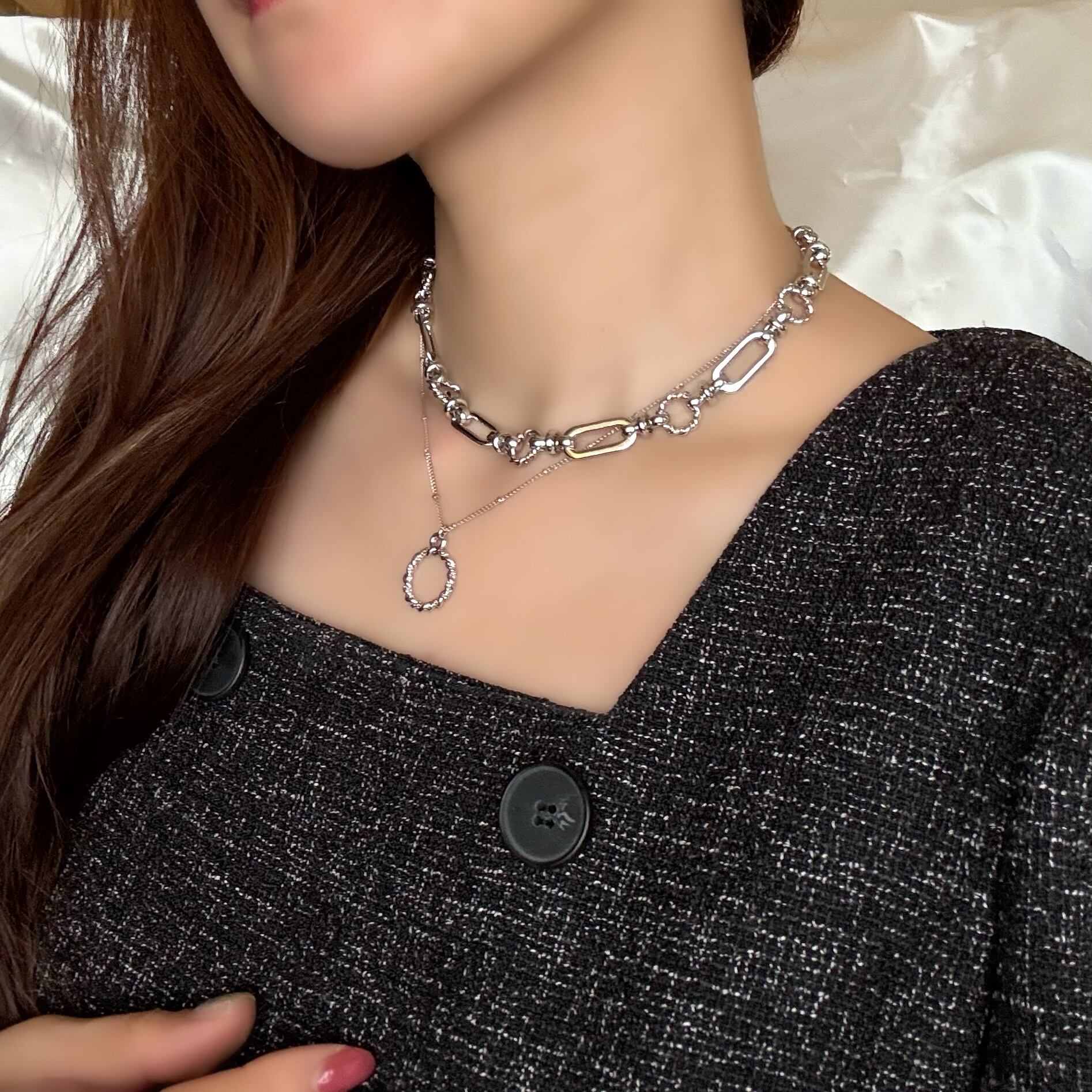 Urban Chain Layered Choker Necklace-aimelbie