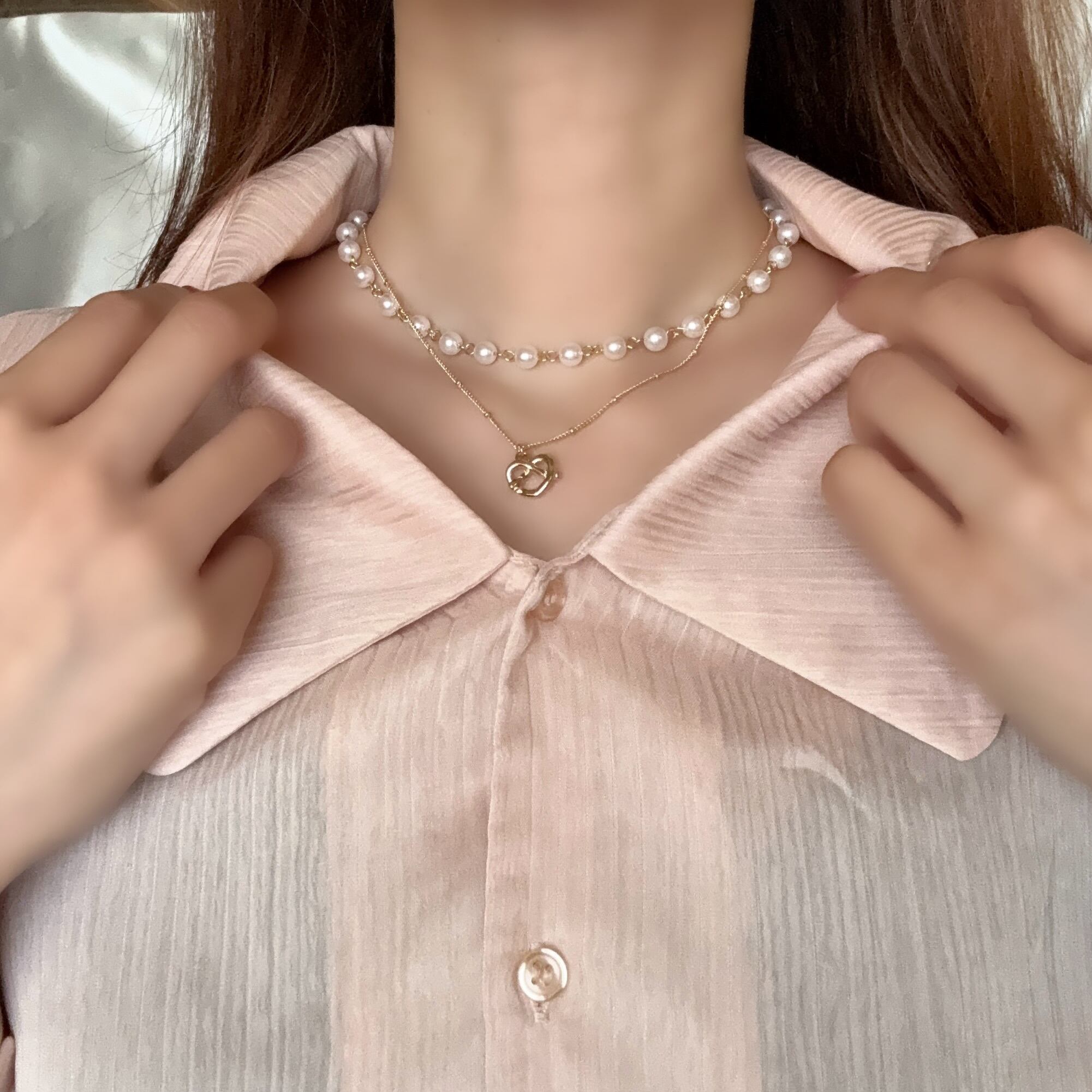 Pretzel Layered Pearl Choker-aimelbie-