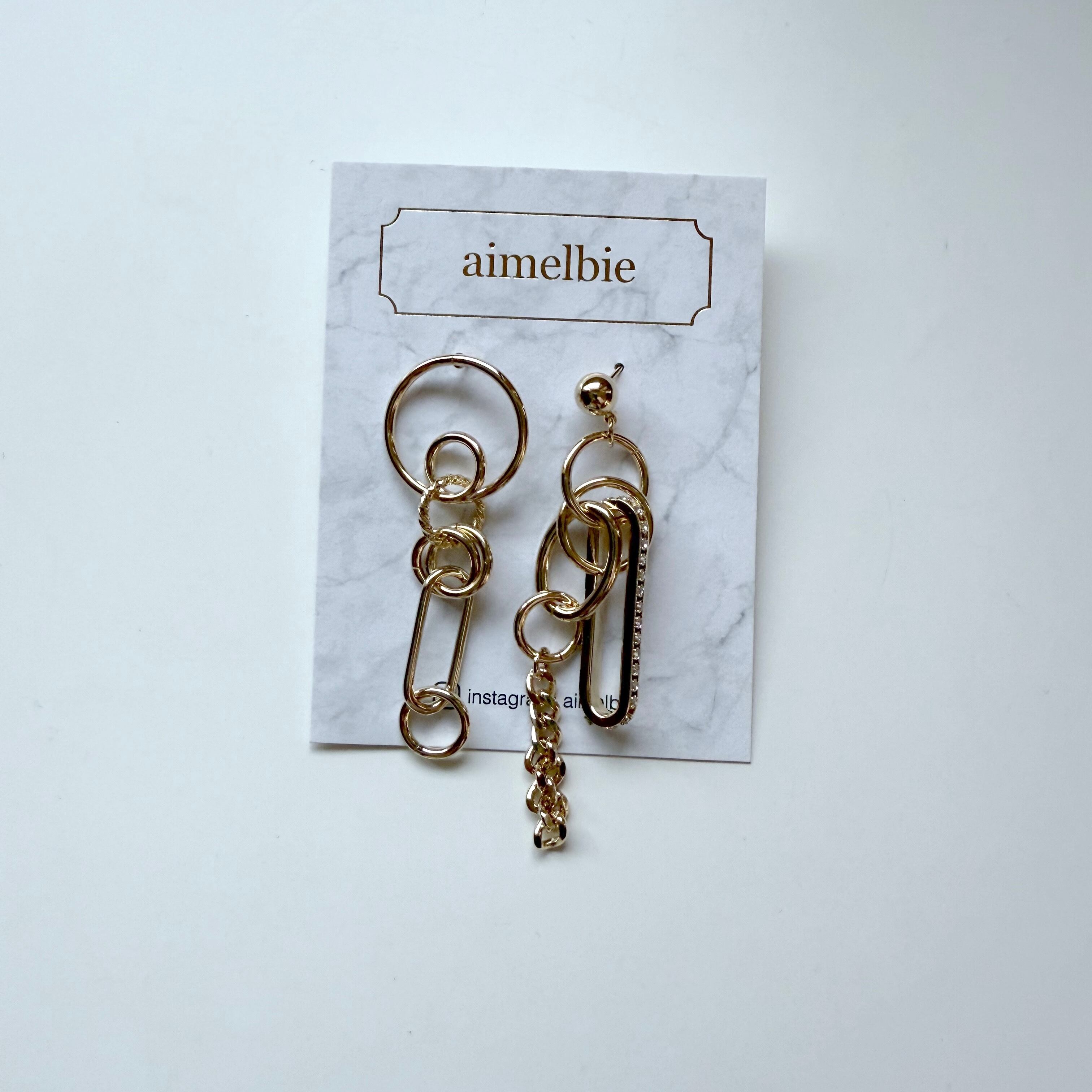 色々なパーツが付いた豪華なアシンメトリーピアス