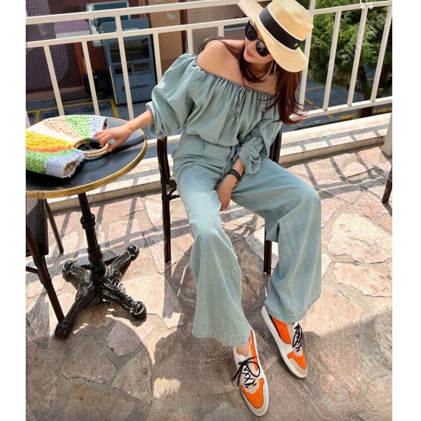 デニムオフショルダーセットアップは、トレンド感満載のデザインで、女性らしさを引き立てるアイテムです。オフショルダーのデザインがデコルテを美しく見せ、デニム素材がカジュアルさをプラス。ふんわりとしたシルエットが体型をカバーしつつ、スタイリッシュな印象を与えます。セットアップなので、簡単にコーディネートが決まり、日常のスタイリングにも大活躍します。どのシーンにも合わせやすく、洗練された大人の着こなしを楽しむことができる一品です。